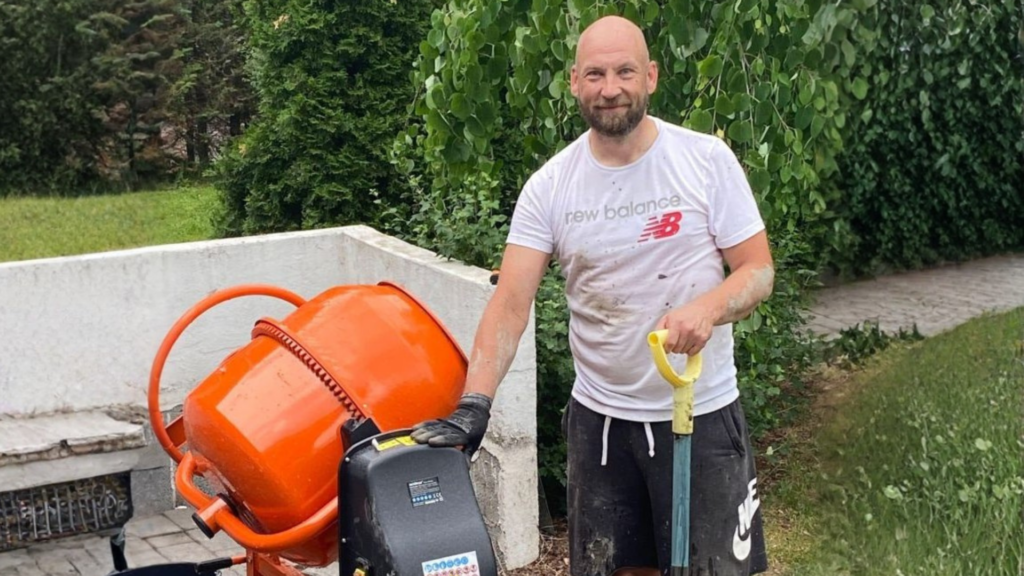 Ja kuvassa yksi minulle tärkeä hetki – oma betonimylly, joka oli pitkään haaveissa ja päätyi lopulta oman pihan projekteihin.